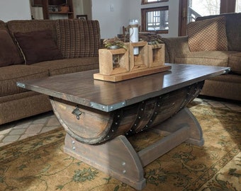 Personalized Reclaimed Wine Barrel Coffee Table With Unique Lift Top