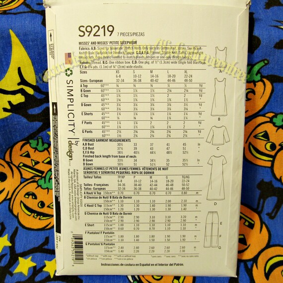 Simplicity 9219 Sewing Pattern Pajamas Sleepwear Nightie Xs Xl Etsy